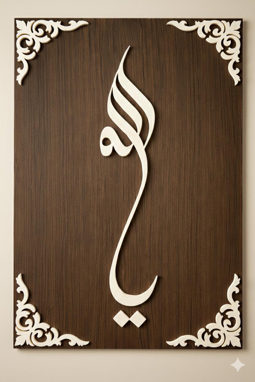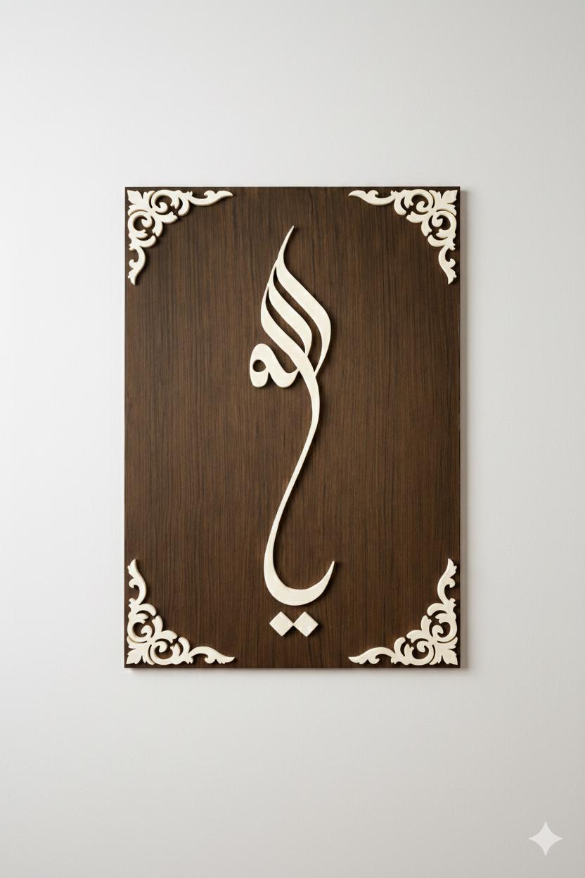 Bring spiritual elegance into your space with this Ya Allah Islamic calligraphy wall art CNC file. This design is created for makers, workshops, and businesses looking to produce meaningful Islamic décor using CNC routers or laser cutting machines.